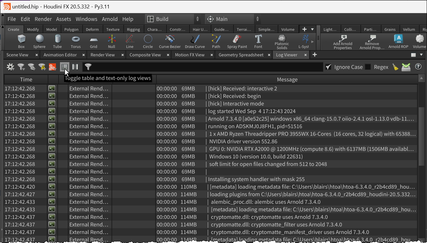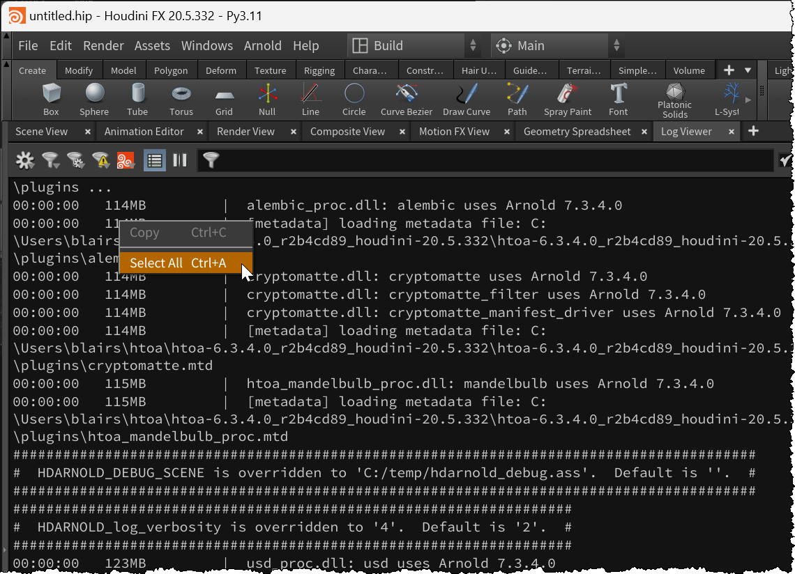 Getting an Arnold log from the Houdini Log Viewer Posted on September 5, 2024 by xsisupport First, set the Arnold log verbosity to Info (typically, Info is more than enough). Then open the Log Viewer. Render something. Then in the Log Viewer, switch to text-only view. Select All (Ctrl+A) and Copy (Ctrl+C) and paste into a text file. Share this: Click to share on X (Opens in new window) X Click to share on Facebook (Opens in new window) Facebook Like Loading... Related